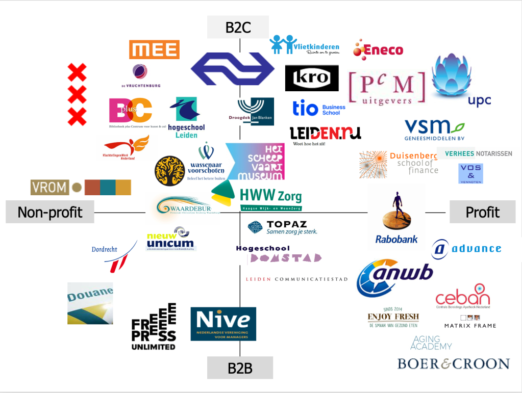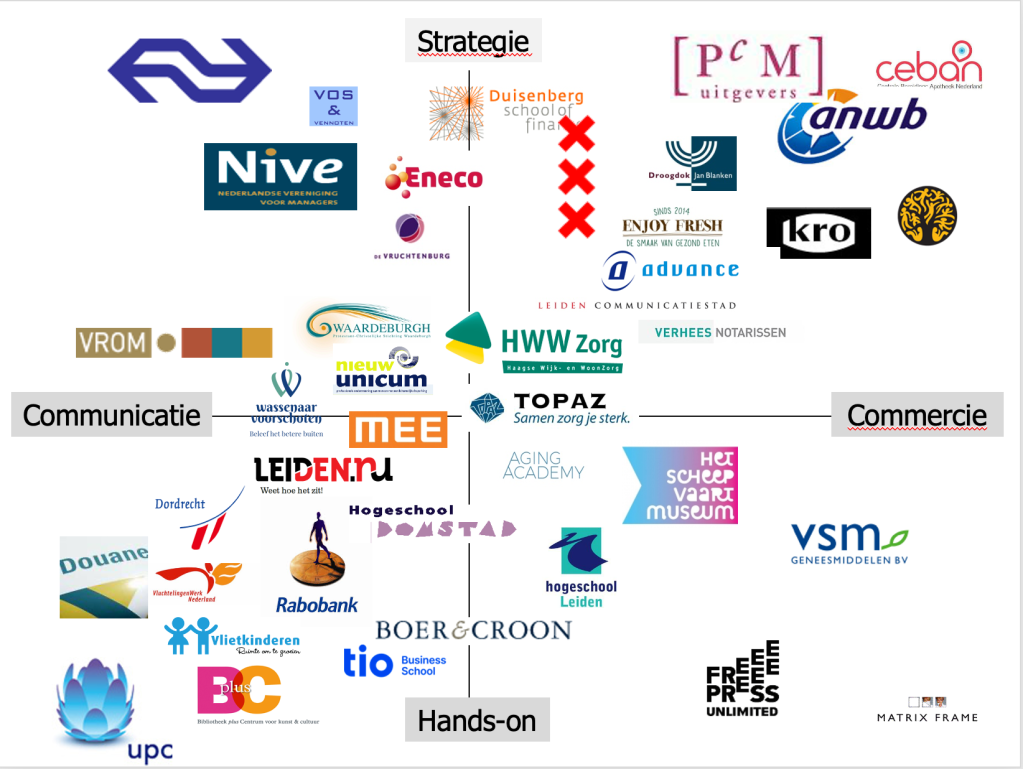 Hieronder een soort positionering van mijn klanten in meerdere assen.